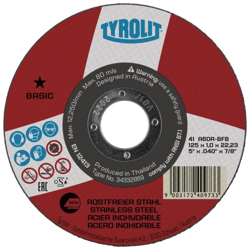 Tyrolit Disco de corte recto 125x1x22,23 A60 BASIC inox