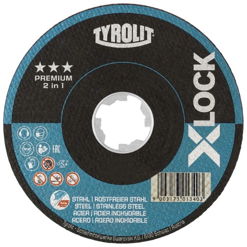 Tyrolit Disco de corte X-LOCK recto 125x1,6x22,23 A46 PREMIUM acero/inox