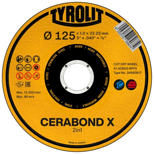 Tyrolit disco de corte CERABOND X recto 125x2x22,23 mm CA30 acero/inox
