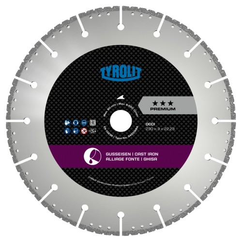 Tyrolit DCCI Discos de corte de diamante 230x3x22,23 PREMIUM fundición esferoid.