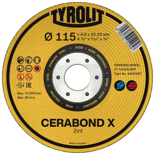 Tyrolit disco de debaste CERABOND X 115x4x22,23 mm CA24Q acero/inox