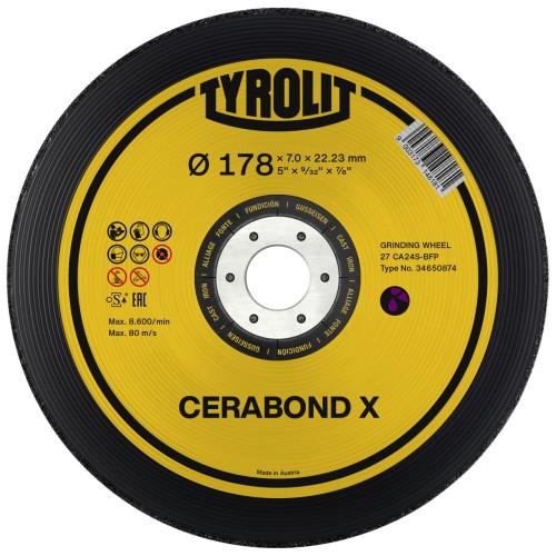 Tyrolit disco de debaste CERABOND X 178x7x22,23 mm CA24Q fundición