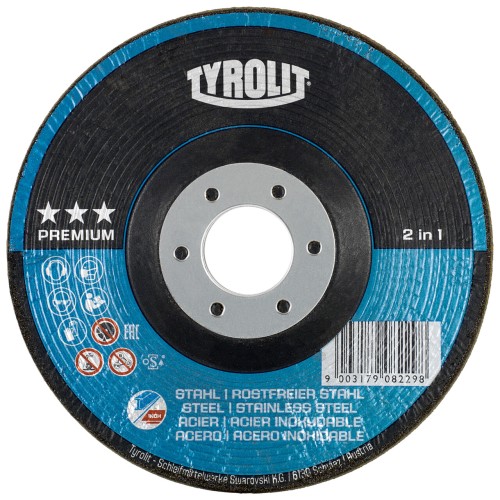 Tyrolit Rondeller® Disco de desbaste 125x22,23 A24Q PREMIUM acero/inox
