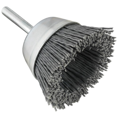 Los cepillos de vaso Basic para rectificado penetrante recto son adecuados para mecanizados de difícil acceso en casi todos los materiales, como acero, acero inoxidable, aluminio, cobre, latón o madera. Los cepillos de vaso con carburo de silicio son muy duros y, por tanto, permiten un alto arranque de material en trabajos de desbarbado de engranajes, piezas de válvulas y cantos de corte de perfiles y tubos.
