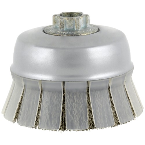 Gracias a su protección transparente, los cepillos de taza PREMIUM SHIELD para rectificadoras angulares ofrecen la máxima seguridad y eficacia al trabajar el acero inoxidable. La composición del alambre de metal noble evita que la pieza de trabajo se oxide. Esta herramienta está disponible en diferentes versiones. Mientras que las versiones con alambre ondulado (DW) están predestinadas para materiales blandos, sensibles y suciedad ligera, los cepillos con alambre anudado (DZ) son adecuados para trabajos pesados, suciedad intensa y para eliminar pintura y barniz.