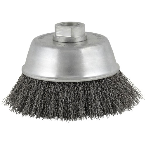 El cepillo de taza Basic para rectificadoras angulares puede utilizarse de forma universal para mecanizar grandes superficies de acero. El uso de alambre de acero SM latonado evita la corrosión. Este producto es adecuado para eliminar óxido, pintura y barniz, así como para la preparación de superficies y el cepillo para limas de acero. La herramienta también puede utilizarse para limpiar cordones de soldadura. Los cepillos están disponibles en diferentes especificaciones para cubrir todas sus necesidades, desde delicado (DW) hasta grueso (DZ).