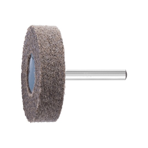 47700233 Muela de vellón prensada POLINOX forma cilíndrica PNER Ø 50x25 mm, mango Ø 6 mm, semiblando A, fino para acabado
