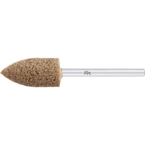Las muelas POLINOX PNER se componen de varias capas de vellón prensadas y unidas con un sistema especial de resina granulada. Diferentes combinaciones de compactación, fibras, granos y el correspondiente encolado dan como resultado productos de vellón con un muy buen acabado de superficie, una alta capacidad de arranque y una larga vida útil. Estas herramientas pueden utilizarse para cubrir un amplio espectro en el acabado de superficies, desde el lijado relativamente basto hasta la preparación para el pulido. La ejecución para amoladoras rectas es especialmente adecuada para el mecanizado de cordones en ángulo y contornos o cavidades de difícil acceso. Varias capas de vellón fuertemente prensadas y unidas con un sistema especial de resina granulada. La ejecución corindón A es ideal para aplicaciones universales en acero y metales no férricos. La forma ojival SP es ideal para el mecanizado de aberturas y agujeros pequeños.