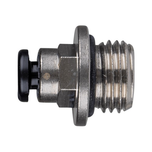 Accesorios de conexión para el husillo de robot. Acoplamiento rápido para montaje en husillos de robot en uso estacionario. Acoplamiento en la máquina: 1/4". Diámetro exterior de alimentación de aire de 4 mm.