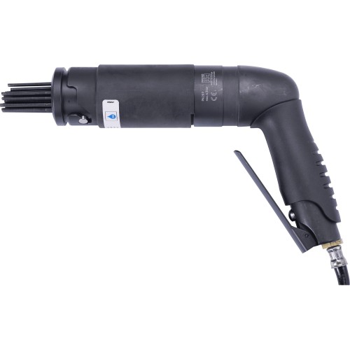 La pistola de agujas de aire comprimido con mango de agarre envolvente dispone de una salida de aire delante. Las pistolas de agujas neumáticas son la solución ideal para eliminar a fondo óxido, cascarilla, suciedad, pintura suelta y restos de hormigón en metales y otras superficies robustas. Los ámbitos de aplicación típicos abarcan desde el mecanizado de metales y el saneamiento, pasando por los trabajos en hormigón, hasta la preparación de pinturas y recubrimientos. Las pistolas de agujas neumáticas se utilizan especialmente para eliminar el óxido en barcos, máquinas agrícolas o herramientas de construcción. También juegan un papel determinante en la limpieza de mezcladores o la eliminación de óxido en lugares de difícil acceso. La pistola de agujas con un mango cómodo elimina óxido, cascarilla, pintura, suciedad y restos de hormigón en metales y otras superficies. La máquina resulta especialmente adecuada para recubrimientos y piezas de metal macizas, ya que los movimientos bruscos de las agujas se han diseñado para materiales robustos. La máquina dispone de un alojamiento para agujas. Manguera de alimentación de 1,5 m con rosca 1/4" y boquilla de enchufe con rosca (STGI), juego de agujas de repuesto ENS-PN 28 P-140 mm.