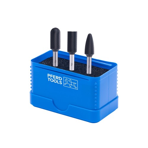 PFERD TOOLS Juego de fresas de metal duro de alto rendimiento 1312 MICRO, 3 piezas Ø 12 mm, mango Ø 6 mm, recubrimiento HICOAT, para mecanizado fino