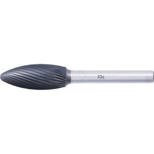 Fresa de metal duro de alto rendimiento forma llama B Ø 12x30 mm, mango Ø 6 mm Z3, recubrimiento HICOAT universal medio